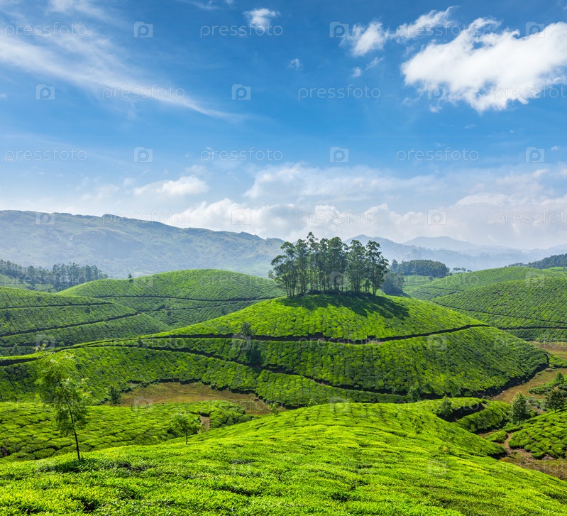Чайные плантации в Муннаре, штат Керала, Индия