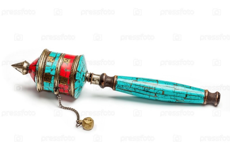 Тибетское буддийское колесо Мани или ручное молитвенное колесо