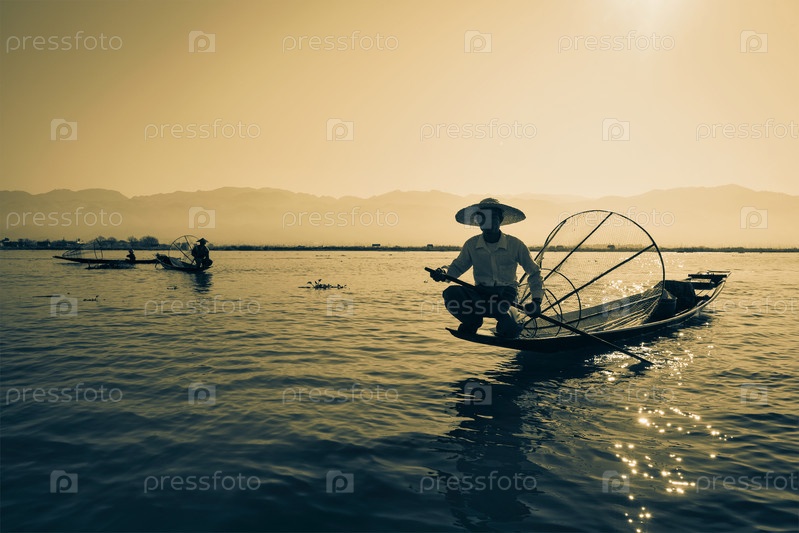 Бирманский рыбак на озере Инле, Мьянма