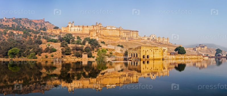 Известная достопримечательность Раджастана - Панорама форта Амер (Амбер), Раджастан, Индия