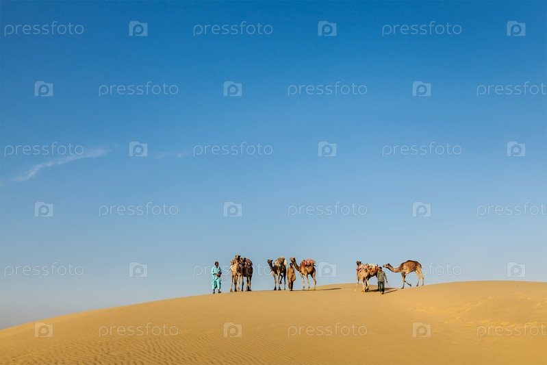 Три погонщика верблюдов (погонщики верблюдов) с верблюдами в дюнах Тар-дес