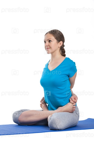 Йога - молодая красивая женщина, делающая изолированные упражнения асаны йоги