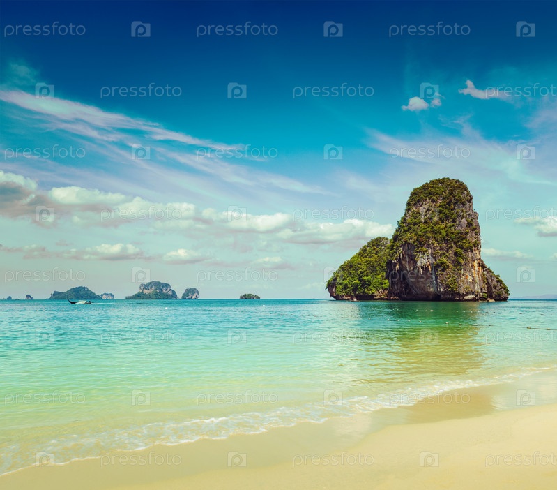 Винтажный ретро-хипстерский образ путешествия по пляжу Прананг. Краби, Таиланд