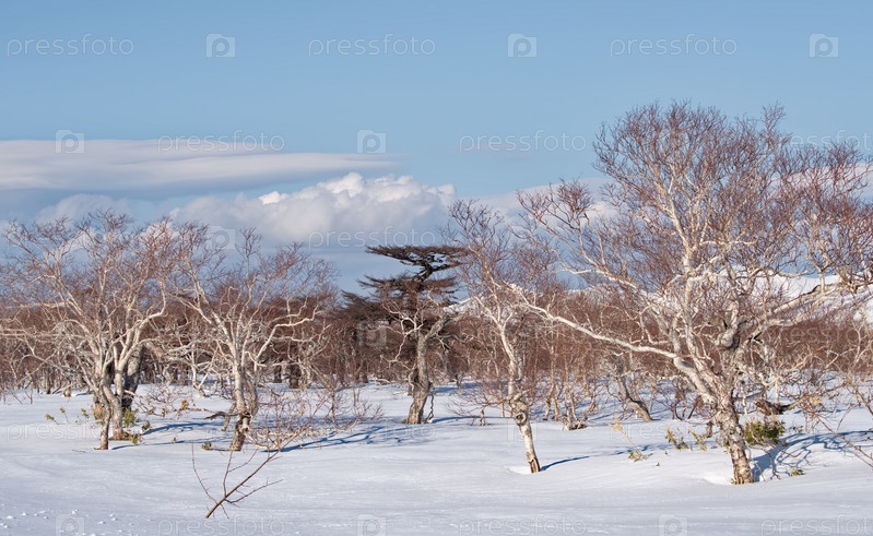 Россия. Дальний Восток, остров Итуруп. Причудливая неуклюжесть каменной березы, которая растет только на Камчатке и Курильских островах, формируется из-за постоянных ветров с Тихого океана