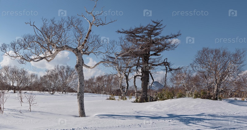 Россия. Дальний Восток, остров Итуруп. Причудливая неуклюжесть каменной березы, которая растет только на Камчатке и Курильских островах, формируется из-за постоянных ветров с Тихого океана