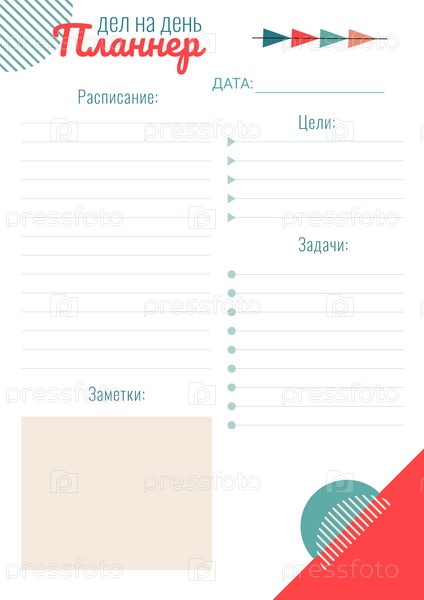Шаблон ежедневного планера с элементами стиля мемфис. Формат листа А4