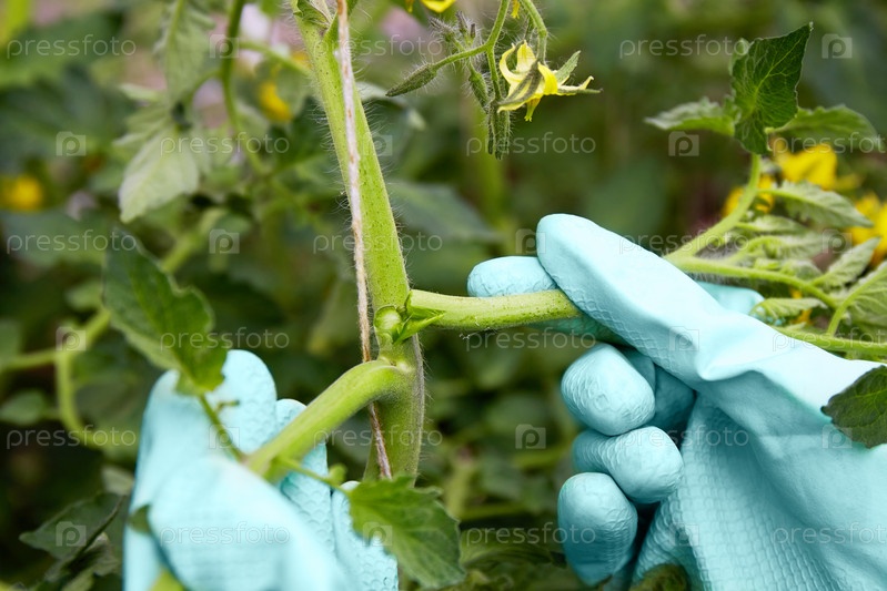 Формирование кустов цветущих растений томата, удаление боковых побегов