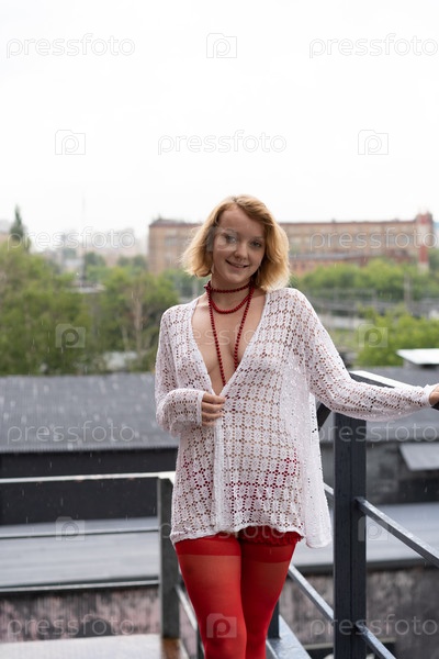 Молодая красивая женщина позирует в красном нижнем белье в студии