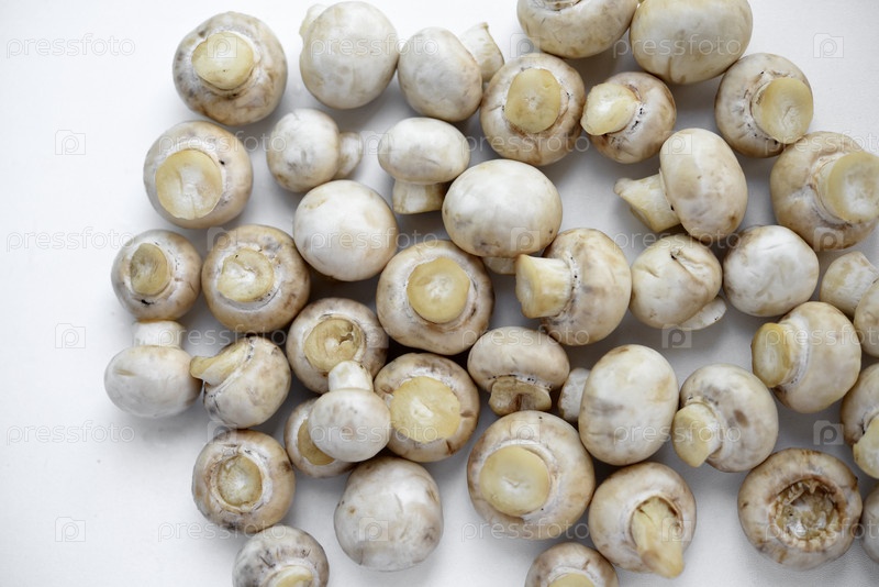 Белые грибы на белом фоне. Грибы чистят на кухне