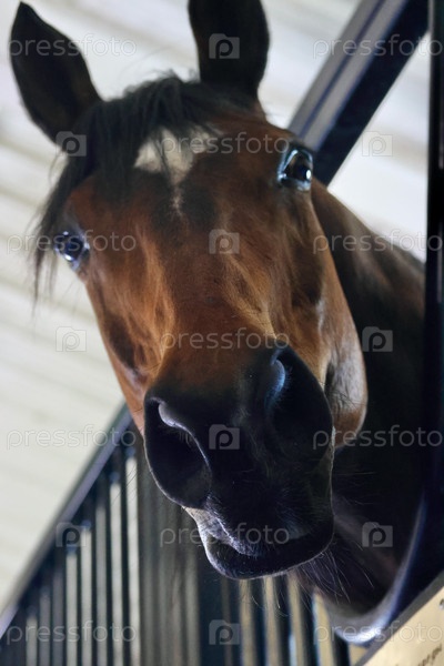 Лошадь в конюшне на конюшне в Этнокультурно-туристическом комплексе