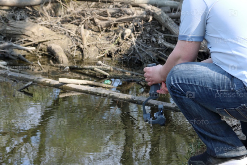 Молодой человек снимает видео на смартфон. Использует подвес для получения плавных кадров. Внимательно наблюдаю за съемками фильма