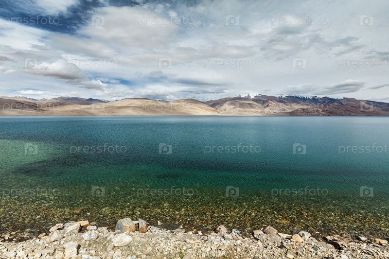 Гималайское горное озеро в Гималаях Цо Морири (официальное название: Заповедник водно-болотных угодий Цоморири), Корзок, район Чангтанг, Ладакх, Джамму и Кашмир, Индия
