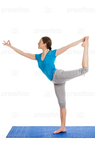 Йога - молодая красивая женщина, делающая изолированные упражнения асаны йоги