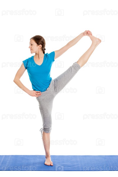 Йога - молодая красивая женщина, делающая изолированные упражнения асаны йоги