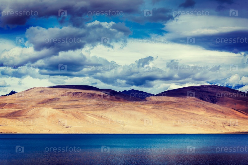 Гималайское горное озеро в Гималаях Цо Морири (официальное название: Заповедник водно-болотных угодий Цоморири), Корзок, район Чангтанг, Ладакх, Джамму и Кашмир, Индия