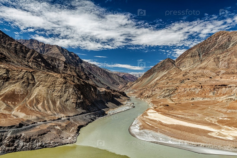 Место слияния рек Инд и Занскар, Ладакх