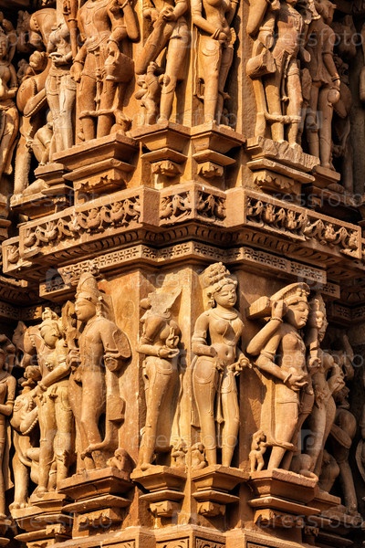 Знаменитые каменные скульптуры, храм Кандария Махадев, Кхаджурахо, Индия. Объект Всемирного наследия ЮНЕСКО