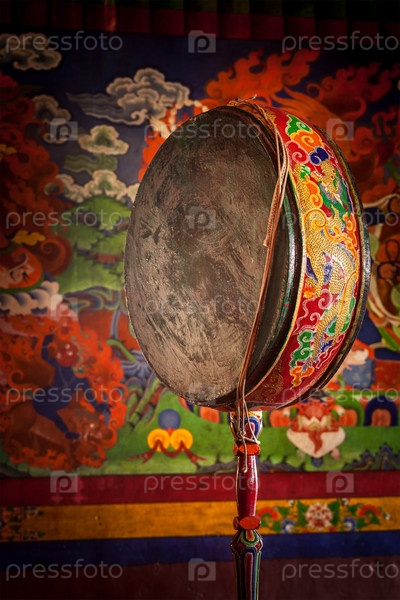 Гонг (барабан) в Спитук-гомпе (тибетский буддийский монастырь). Лададх, Индия