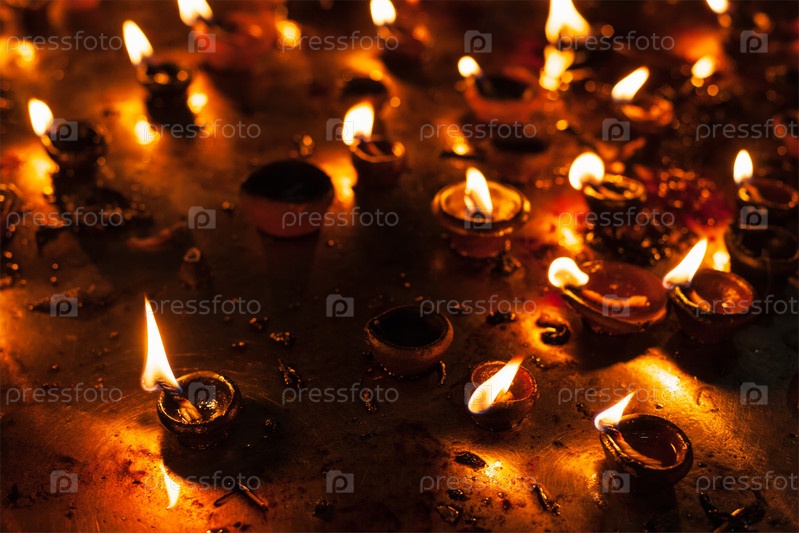 Дивали зажигает масляные свечи в индуистском храме. Индия