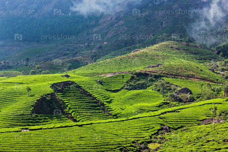 Плантации зеленого чая в Муннаре, Керала, Индия