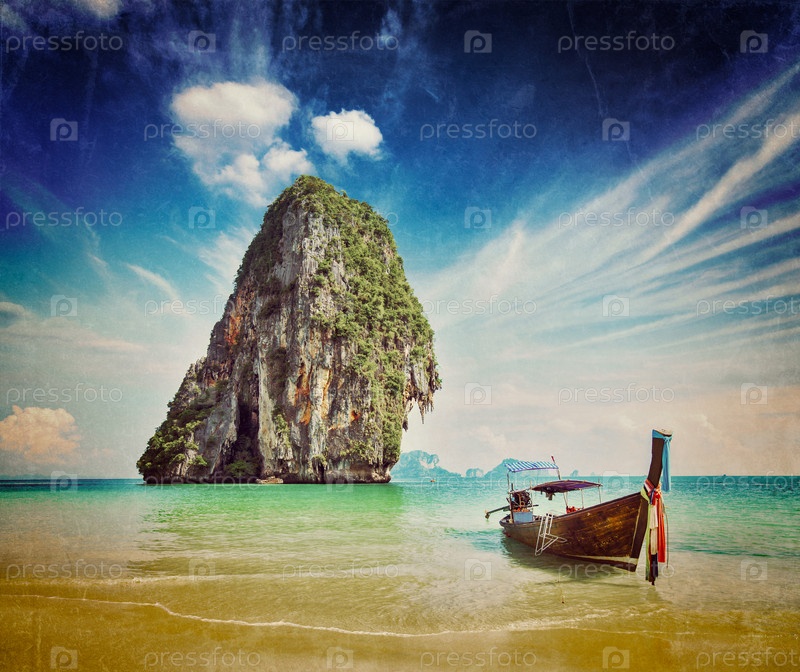 Лодка с длинным хвостом на пляже, Таиланд