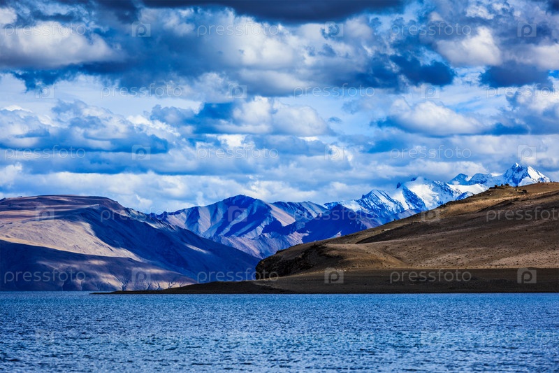 Гималайское горное озеро в Гималаях Цо Морири на закате, Корзок, Ладакх, Индия