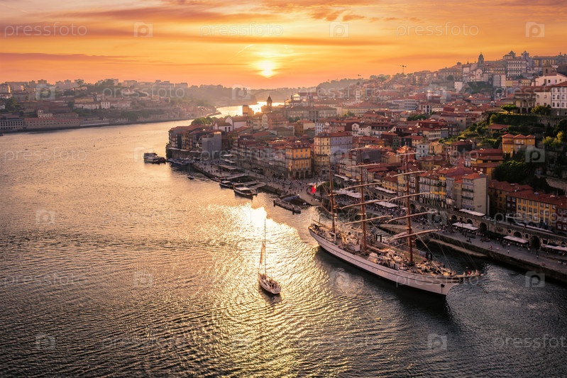 Вид на город Порту, Португалия на закате