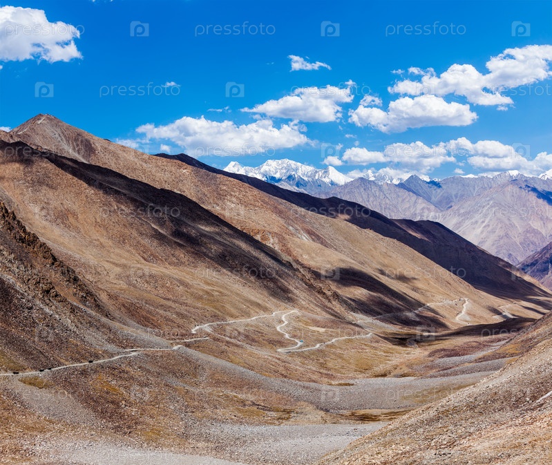 Гималайский пейзаж с дорогой, Ладакх, Индия