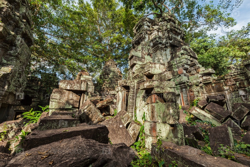 Концепция путешествия в Камбоджу - древние руины, храм Та Пром, Ангкор, Камбоджа