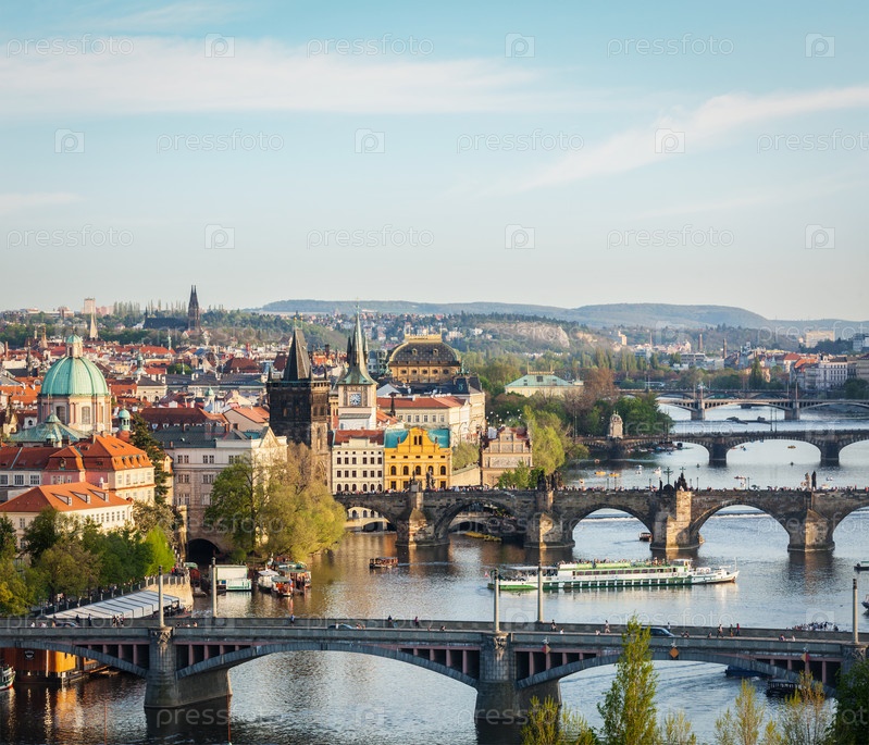 Панорамный вид на пражские мосты через реку Влтава