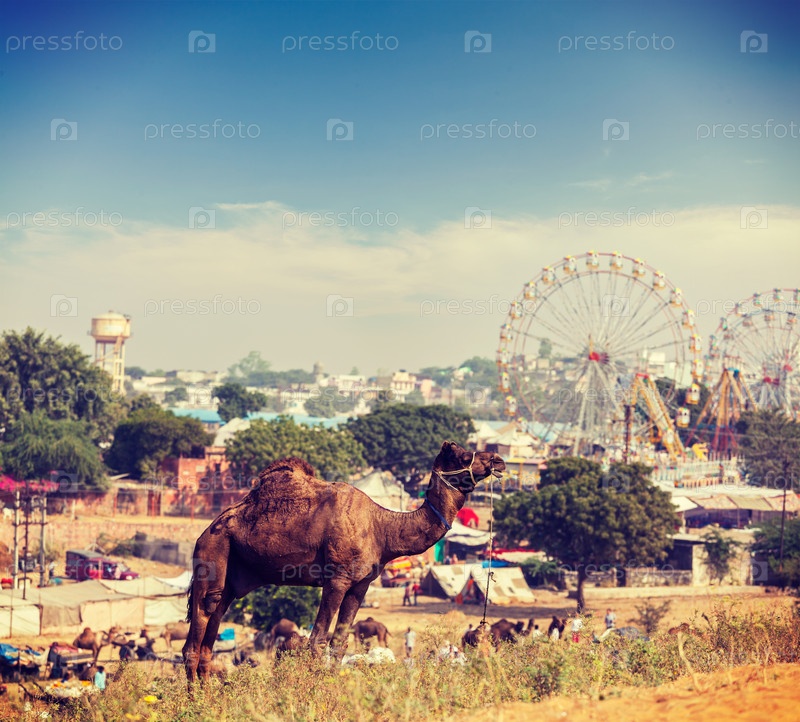 Верблюды на Пушкар Мела Ярмарка верблюдов в Пушкаре, Индия