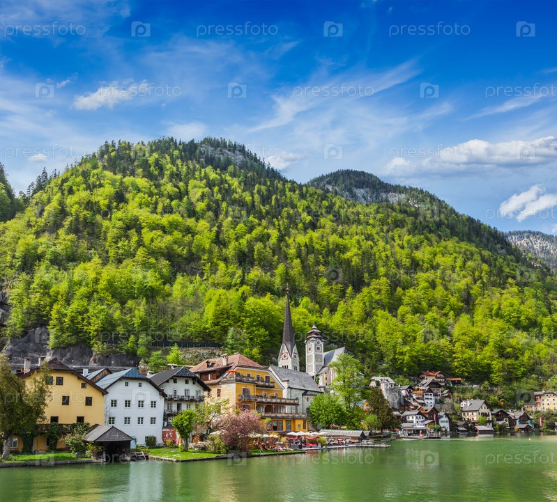 Австрийская туристическая деревня Гальштат на Гальштаттер-Зее в австрийских Альпах. Зальцкаммергут, Австрия