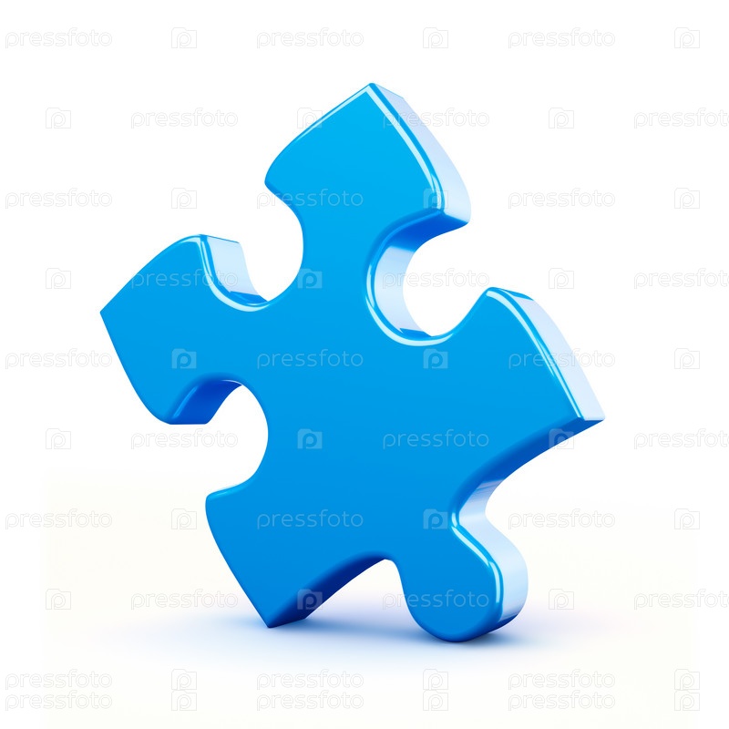 Один синий кусок головоломки, изолированный на белом фоне