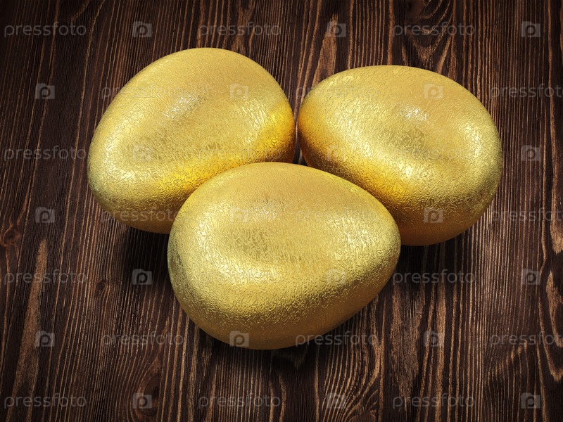 Три золотых пасхальных яйца изолированы на деревянном фоне