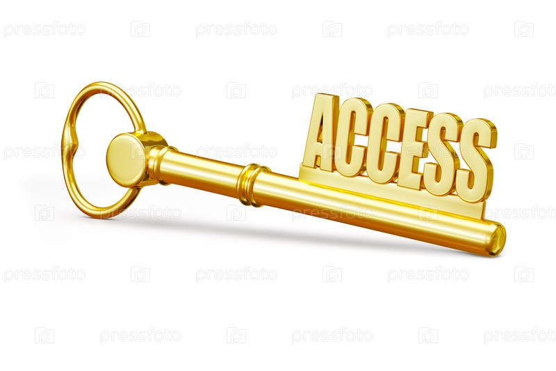 Концепция доступа - золотой ключ доступа из золота, изолированный на белом фоне