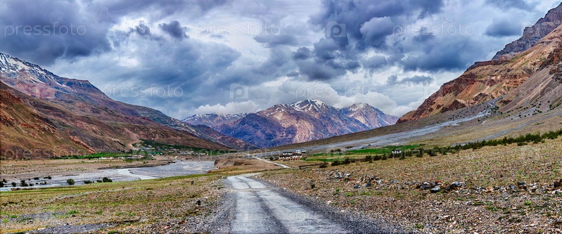 Панорама дороги в Гималаях, долина Спити, Химачал-Прадеш, Индия