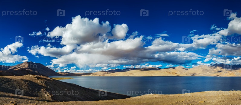 Панорама гималайского озера Цо Морири в Гималаях на закате, Корзок, Ладакх, Индия