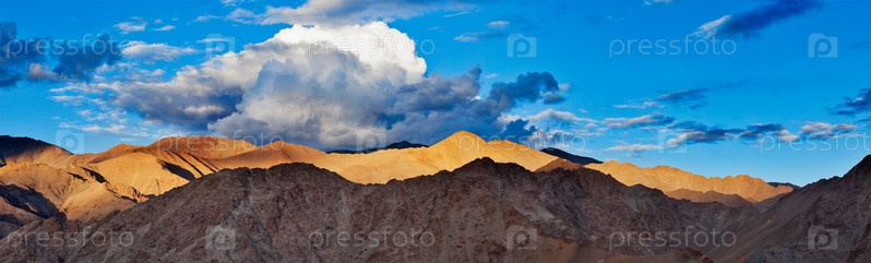 Панорама Гималаев на закате. Ладакх, Джамму и Кашмир, Индия