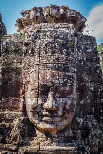 Древнее каменное лицо храма Байон, Ангкор, Камбоджа