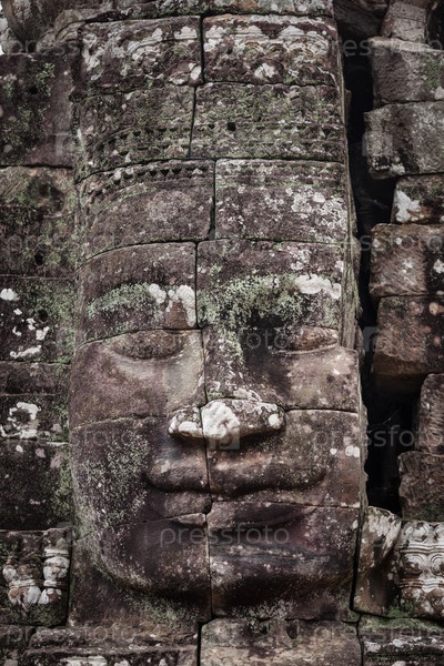 Древнее каменное лицо храма Байон, Ангкор, Камбоджа