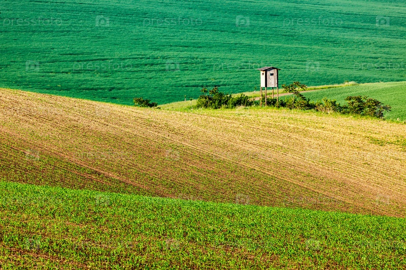 Моравский холмистый пейзаж с хижиной охотничьей башни