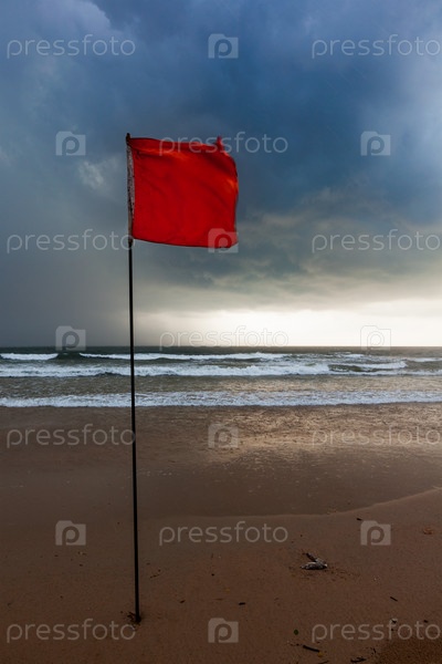 Флаги предупреждения о шторме на пляже. Бага, Гоа, Индия