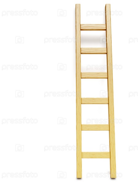 Деревянная лестница возле белой стены. иллюстрация 3D-рендеринга