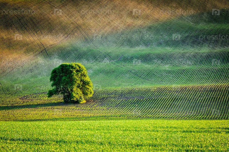 Одинокое дерево на вспаханном поле