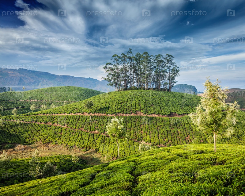 Керала Индия: плантации зеленого чая в Муннаре, Керала, Индия - туристическая достопримечательность