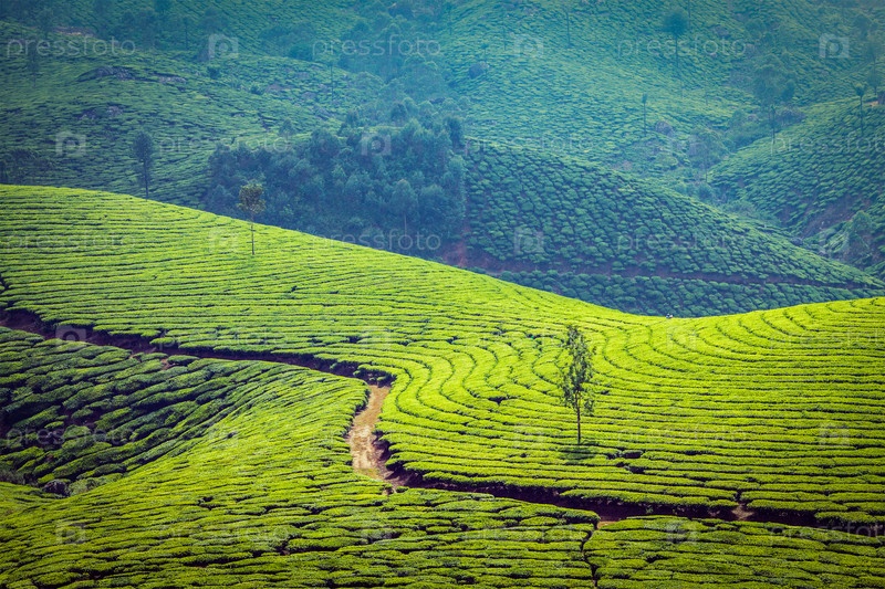 Плантации зеленого чая в Муннаре, Керала, Индия