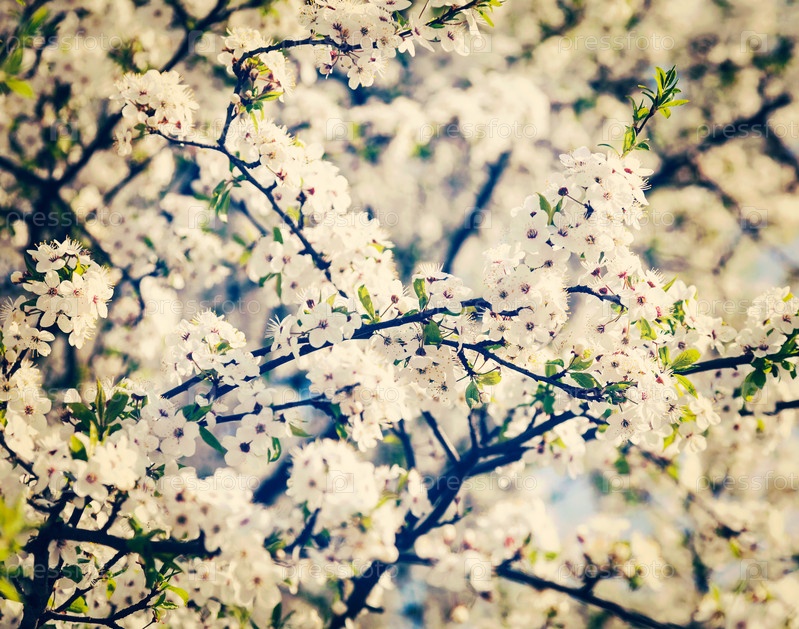Винтажный ретро-эффект, отфильтрованный хипстерский стиль, изображение цветущей ветки яблони весной с цветами
