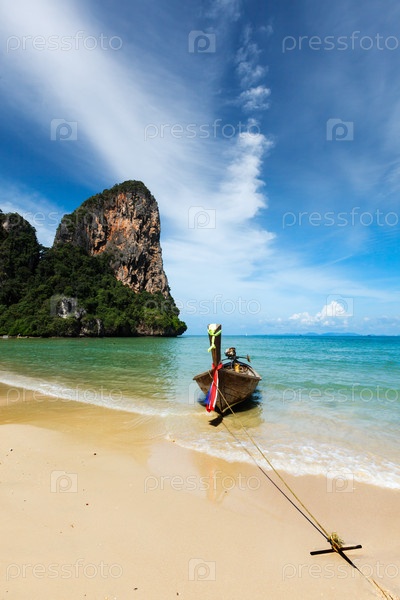 Лодка с длинным хвостом на пляже, Таиланд