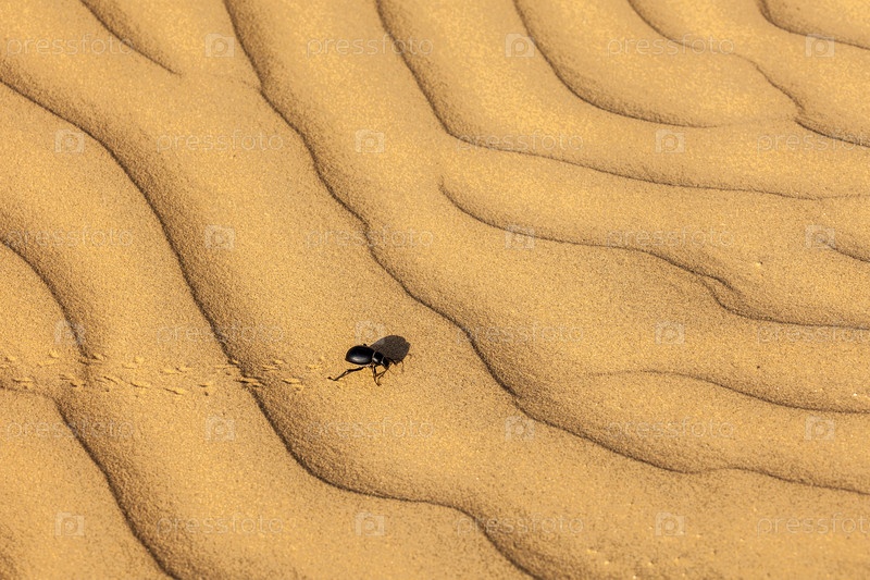 Жук-скарабей (Scarabaeus) на песке пустыни
