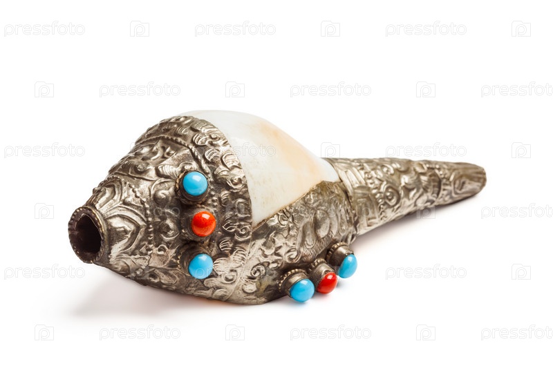 Тибетский буддийский рог из ракушки Дунг-Дкар